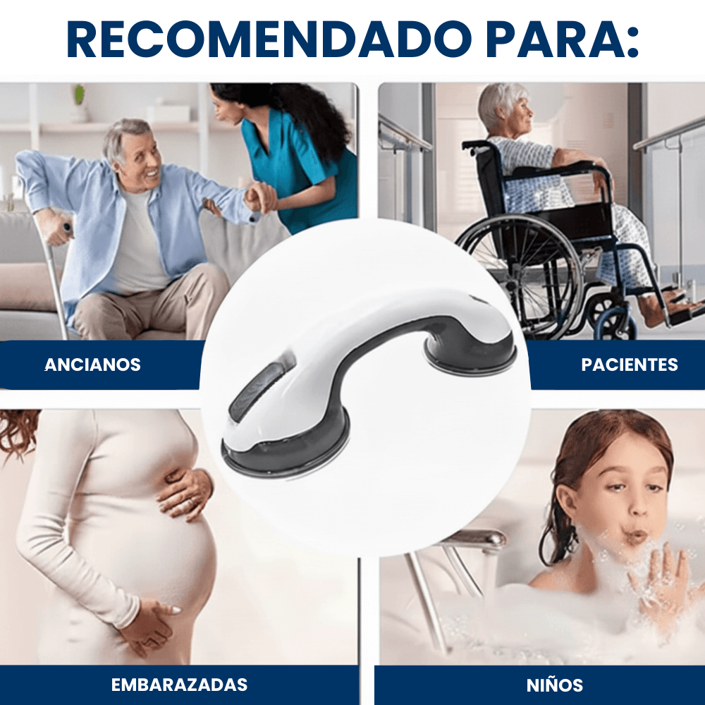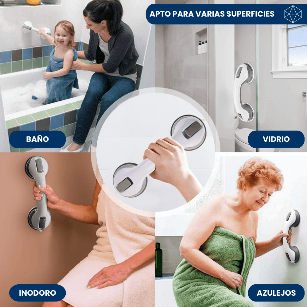 Sí, está diseñada con ventosas de alta presión que brindan un agarre firme y confiable. Ideal para brindar apoyo adicional al entrar o salir de la ducha o bañera.